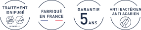 Coutils haut de gamme : CJ5E : 66 % polyester / 24 % viscose, douce, respirante et traitée anti-acarien et antibactérien